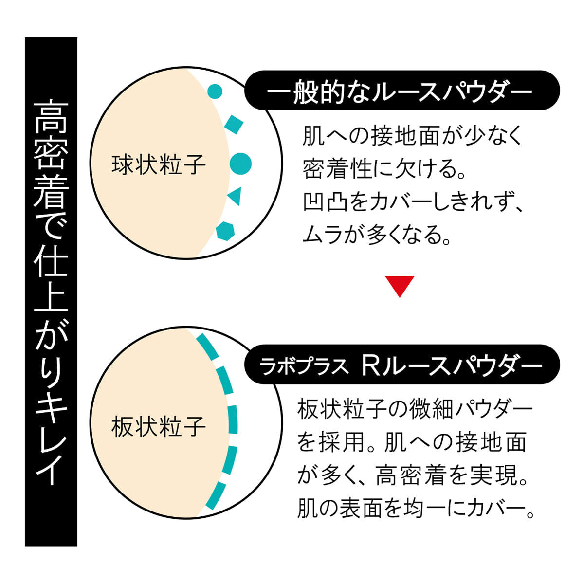 ルースパウダーにもエイジングケアという考えから、ラボプラスのメイン成分であるシワ・たるみをケアする「インステンシル」「アクアスピード」を配合。