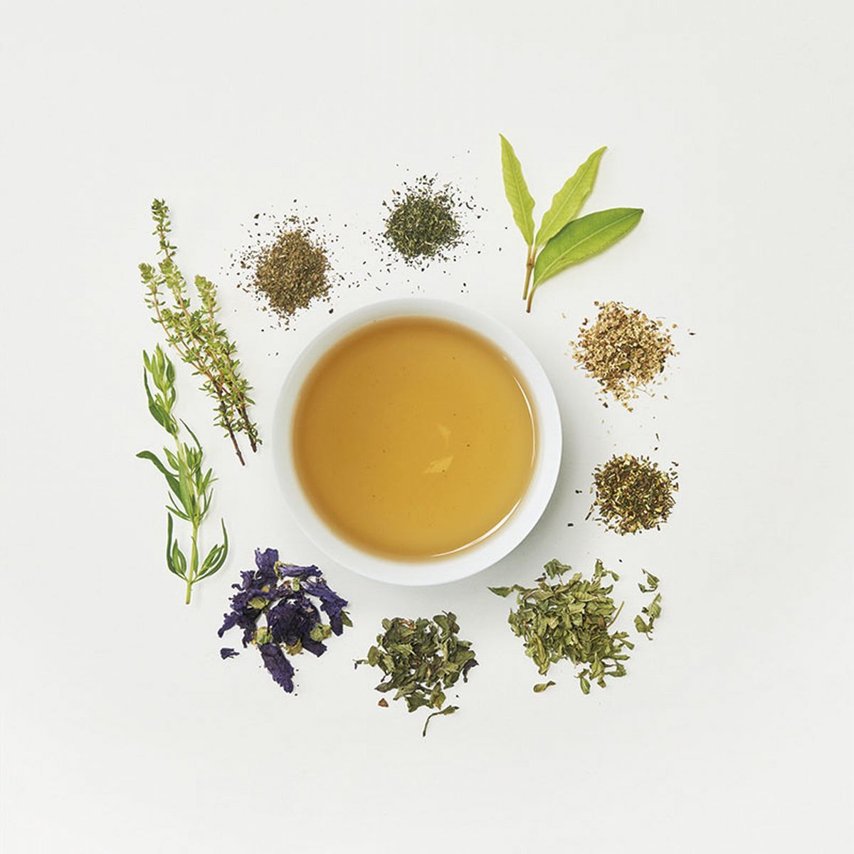 ヒソップ(フランス産)、ルイボスグリーン、レモンバーベナ、ペパーミント、レモンマートル、タイム、ネトル、エルダーフラワー、エキナセア、ホーリーバジル、マロウブルー、アイブライト、甜茶